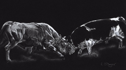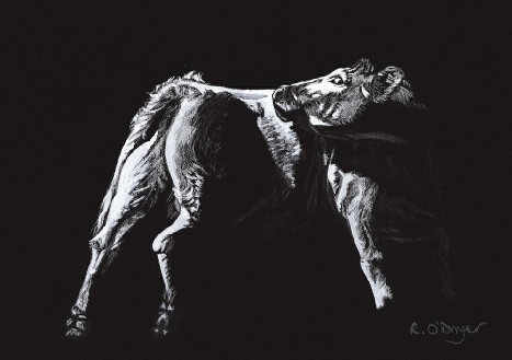 (above right) The Duel, white charcoal & gouache on black paper by Rebecca O’Dwyer (29.7 x 42 cm, £495, ref: 045)