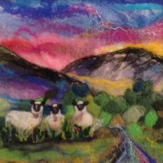 (left) Mountain Sheep In Brecon, wet & dry felting with stitch by Pam Gilbert (29 x 29 cm, NFS, ref: 022)