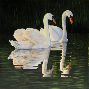 (right) White Beauty, acrylic by Deborah Healey (12” x 8”, £40, ref: 082)