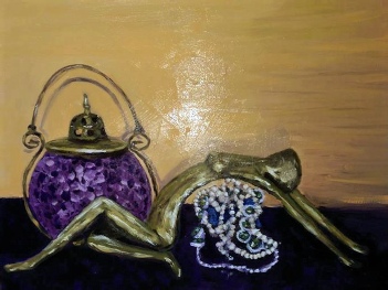(right) Brass Nude With Lantern, oil by Jude Harrington-Smith (£150, ref: 116)