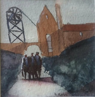 (Left) Coal & Dust, watercolour by Phil Ross (4” x 4”, £65, ref: 055)