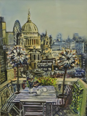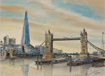 (Below) ‘The Shard & Tower Bridge’, pen & watercolour by Ian Philpot