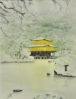 (Left) ‘Japanese Golden Temple’, watercolour  by Jennifer Alsop