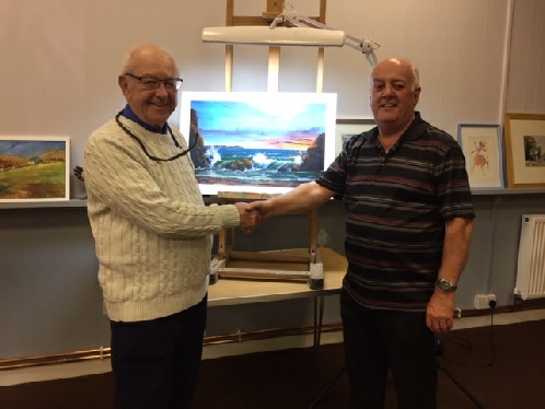 Runner up was Paul Arnott’s colourful atmospheric ‘Sunset’ painting.