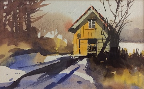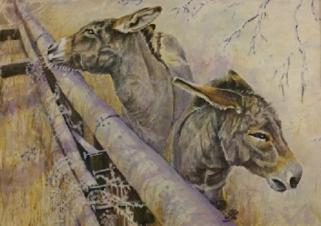 Many congratulations to Tony Douglas-Jones who won the first prize for his watercolour ‘ Winter Wonderland ‘. Well done to the joint runners-up, Jennifer Alsop who painted ‘Little Donkey, Little Donkey’ and Keith Harvey for his watercolour ‘Tobacco Shed’.