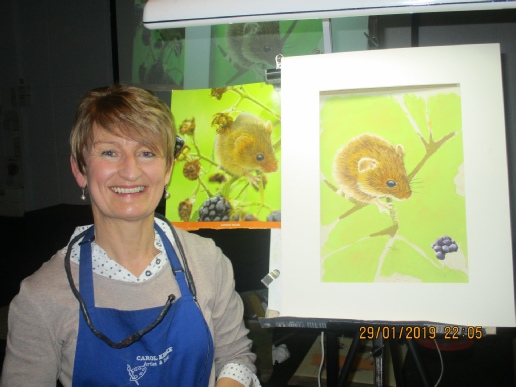 Over 50 members enjoyed a fantastic demonstration of a field mouse in pastels. Carol gave us great insight into this lovely medium, and we saw the painting appear before our eyes. She explained her way of working with pastels and gave us so many hints and tips. The members thank Carol for such a wonderful evening, and in return Carol thanks the members for being such a lovely audience.
