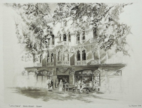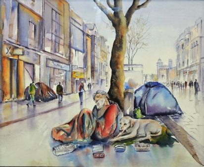 Runner-up for week 1 (‘Local Urban Scene’) was ‘Community Lost’ (pen & wash) by David Kirkham (below left)