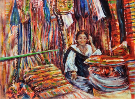 Winner of week 2 for ‘Enclosed Space’ was ‘Market Day’ (acrylic) by Judy Goodfellow (right)