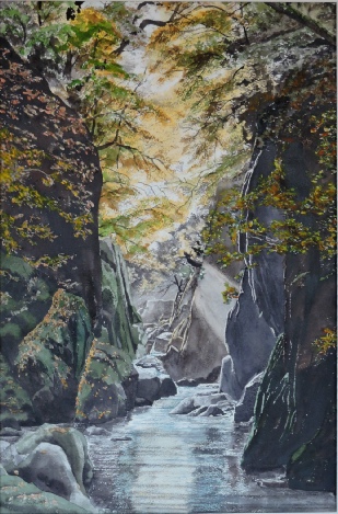 (Below left) ‘Fairy Glen, Bettws y Coed’ (watercolour) by Ian Philpot