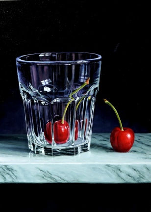 (Above left) ‘Cherries’ (acrylic on paper’ by Gill Roberts