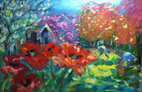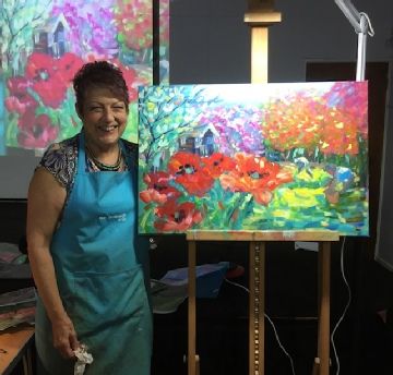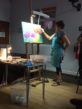 As both artist and author, Sue is extremely talented. Her demonstration was of an imaginative scene, based on some of her photos. The painting was developed to tell a story using bright, vibrant, colourful oil paints in an impressionistic style.