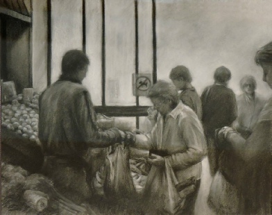 (Above) Winner of the Prize for the Best Figurative Painting was Anita Raymond for ‘Cardiff Market’ (charcoal & pastel)