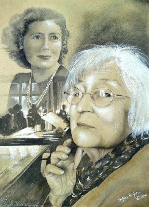 (Left) Winner of the Copystat Portrait Prize was Sylvia Hughes-Williams for ‘Cardiff Librarian Bron (watercolour & pastel)
