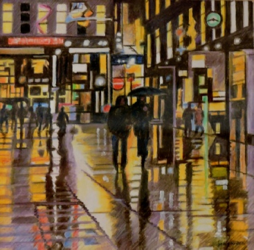 (Above right) The Landscape Prize was won by Joe Rhodes for his mixed media painting ‘Rain In The City’