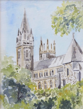 (Above right) Llandaff Cathedral, watercolour, by Jill Davey
