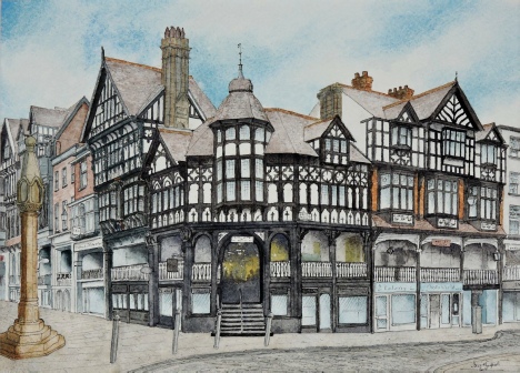 (Above) Chester, ink & watercolour, by Ian Philpot