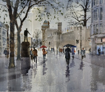 (Above) Brollies Up!, Watercolour, by Tony Douglas-Jones