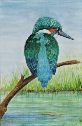 (Below right) Kingfisher, watercolour, by Jane Patten