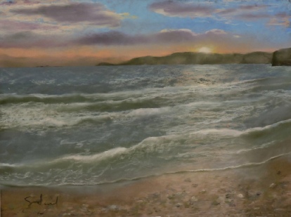 (Above)  Newgale, Pembrokeshire, pastel, by Sue Wood