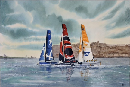 (Above) Extreme Sailing, Cardiff Bay, watercolour, by Ian Philpot