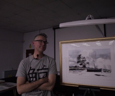 Well, what can we say about this quick fire, accomplished and informative demo in watercolour? Jem's dexterity with his paintbrush, and his "one wash" ethos had us on the edge of our seats. The first half covered his shape-tone-colour process, demonstrated by sketches, delivered at a lively and engaging pace...in the second half Jem painted a half imperial watercolour using the process previously explained...and at every step Jem outlined the stages clearly and in full. We thank Jem for his demo, and look forward to his next visit.
