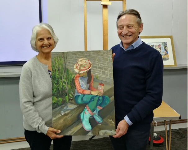 Firstly a huge thank you to Phil for stepping in for this evening's critique. Phil certainly didn't disappoint us. Once again he delivered first class critiques on over 40 paintings, imparting sound advice and commentary on each. Which every member present benefited. Phil's vast knowledge on art,art history and artists was shared, relevant to each painting. With a backdrop of exploding fireworks he kept us amused and entertained. Phil stated that the standard was exceedingly high and chose his 2 favourites..well done to Asha Bashi who was runner up with a charming figurative study of a young girl and congratulations to David Kirkham for a beautifully painted, sensitive landscape, which showed watercolour at it's finest.