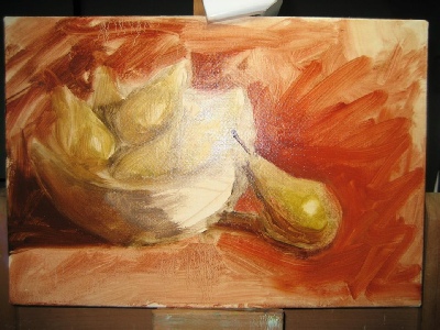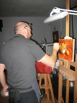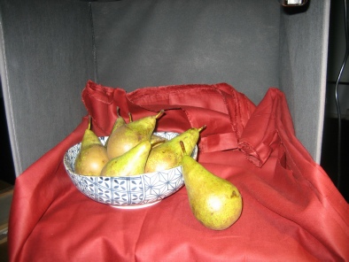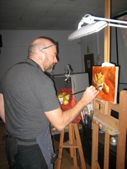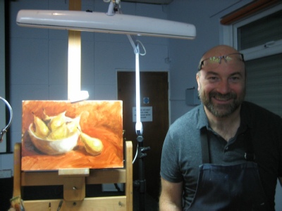 On a wet and windy night, further hampered by heavy traffic Lee gave us the most wonderful demonstration. It was refreshing to see him set up his composition of pears, and hear how he takes time to ensure that it will work well.