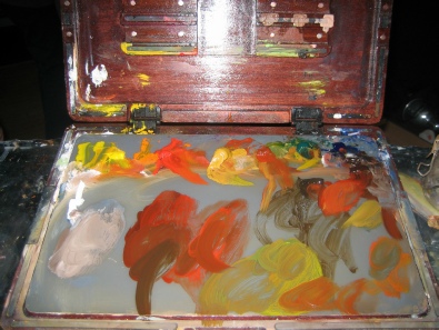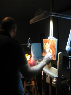 He explained how he spends so much of the early stages making sure the shapes and tones are correct and only dipping in to colour later in the painting.....and holding off from using white for as long as possible.