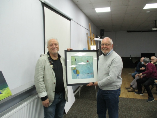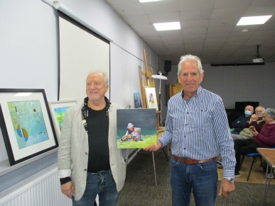 The members were delighted to welcome Trevor as their guest, and to look, learn and benefit from the in-depth critiques he gave to each painting. It was an exciting departure for us, as usually Trevor demonstrates for us, and his amazing knowledge of art, art history and anecdotes kept us captivated to the end. He encouraged us, as artists, to push ourselves, step outside our 'comfort zones. and take our art forward. "Try colour", "paint bigger", "use a bigger brush more loosely and faster", "try this in oils"....and much more. So many of the members commented on the quality of Trevor's critique - one saying it was the best they had attended in 20 years! So much clear. constructive and generous information. Trevor's heart and soul is passionate about painting and it showed! As usual he was asked to choose his number 1 and 2 .. true to form he chose 3.... and had to be checked on the way out for a few he wanted to take home!!