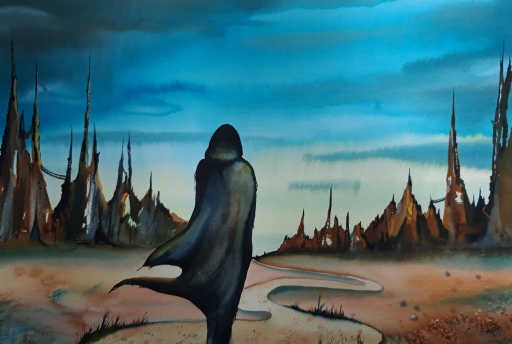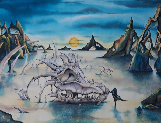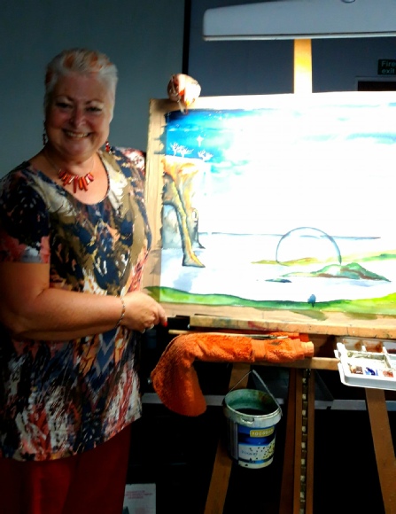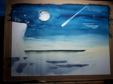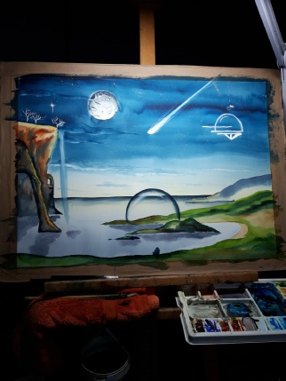 Sharon will finish the landscape back in her studio and will send us the final image, which will be placed here in due course.