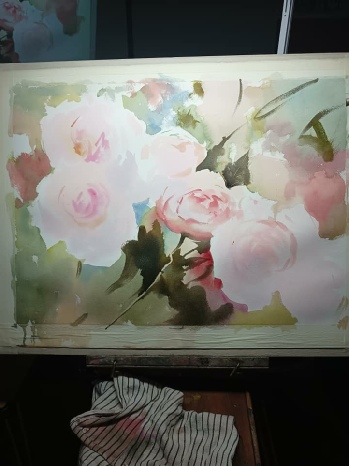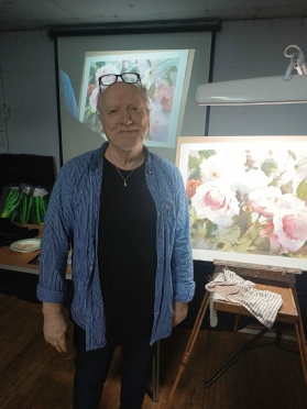 He shared his expert knowledge of the  medium and explained his approach and execution of painting a wonderful watercolour of roses in sunlight.