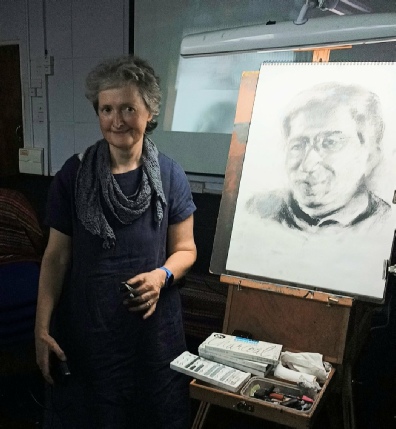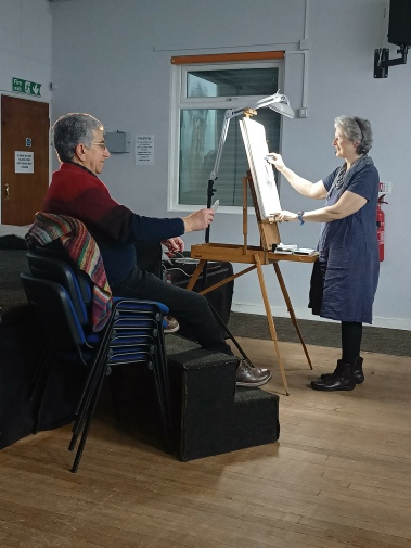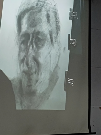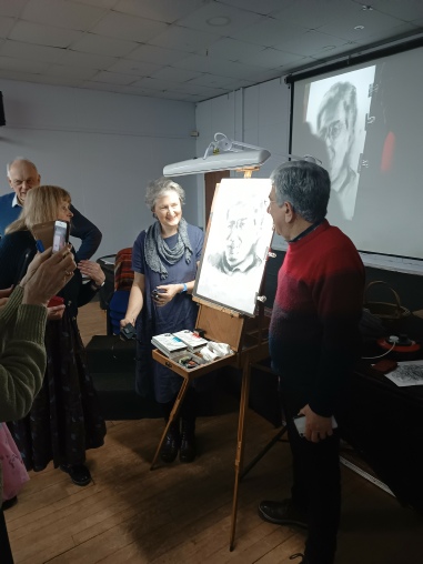 Working in compressed charcoal and using tissue and a plastic rubber she shared her method with the members.