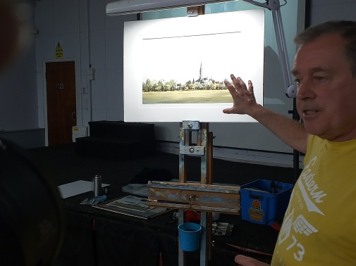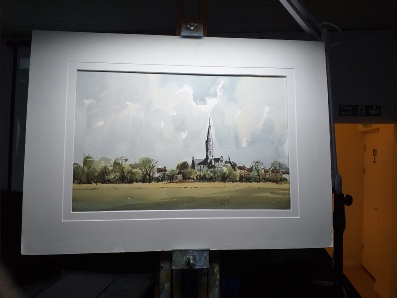 A great night Tuesday - Frank Collict showed us how he tackles line and wash, using only 4 colours, and a bucketful of talent. His first painting of Salisbury Cathedral, already loosely drawn, quickly transformed into a fabulous artwork. After the break, Frank showed us a much looser painting using a different tool to apply the ink.