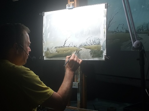 His 4 colours were Paynes grey, raw sienna, burnt sienna, and burnt umber. Thanks to Frank for such an inspiring demo full of very useful tips.