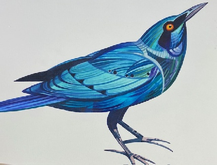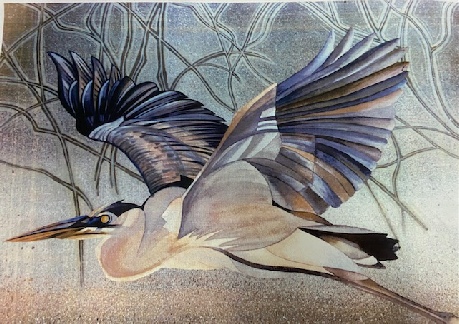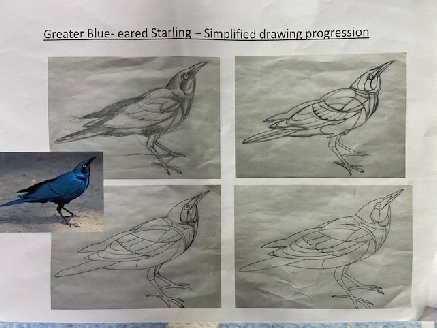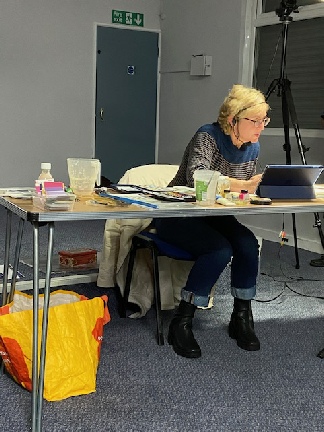 On Tuesday 6th February, we were treated to an inspiring demonstration by the artist Adele Pask. Her background in graphic design was evident in her carefully planned artwork.
