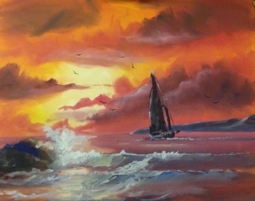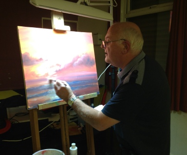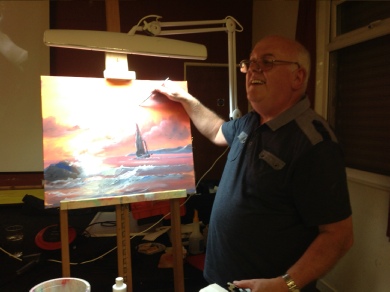 Many thanks to Paul Arnott, who stepped in at the last minute. Paul demonstrated acryl gouache paints to produce a sunset scene, as shown in the photo. His demo was entertaining and presented with great humour, as always. Paul shared tips and advice, drawing on his experience with this medium.