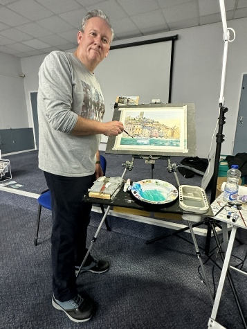 Another great night Tuesday(8th) when Howard Jones showed us his translation, in watercolour of a Croatian harbourside. As always, lots of explanation of his workings, and colour mixing.