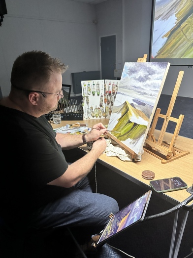 A former farmer and junior school teacher, Matt went through every step of the process, from using Liquin to modify the drying times to the subsequent glazing of the finished painting, all the time enthusing about the joys of oil painting.