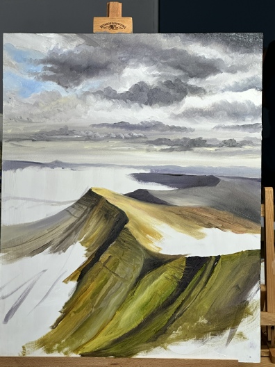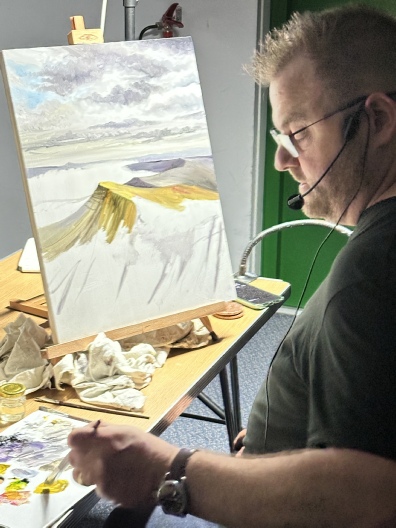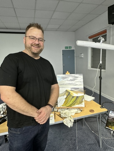 Our visitor on Tuesday, Matt Williams, gave us an excellent demonstration of oil painting, giving us a view from Pen Y Fan of nearby Cribin.