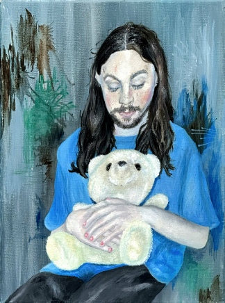 (Above left) ‘Benedict’s Bear’, by Charlie Mann, winner of the portrait prize;