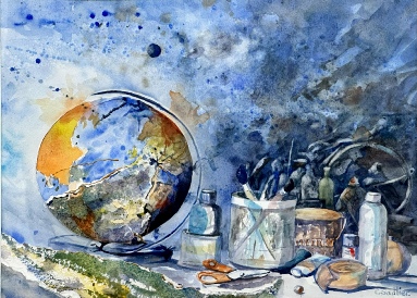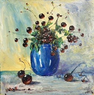 (Below Right) ‘Cherries In Blue Vase’ by Chris Langley