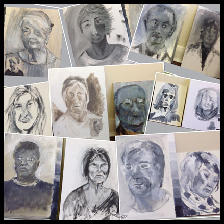 They painted tonal & colour portraits. The key principles taught were that a portrait is essentially a form in space & likeness depends less on the colour of eyes and hair, and more on the structure of the skull and the relationships between the major features. David encouraged a bold, direct approach, with the emphasis on sculpting the head in paint. The workshop was enjoyed by all.