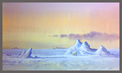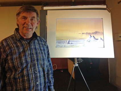 Another beautiful painting was produced while David told us of his encounters with polar bears, glaciers and pack ice. The painting was full of atmosphere with a wonderful Arctic light.