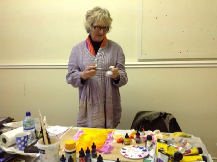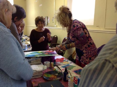 This evening, our guest artist was Jan Gardner who demonstrated her water based mixed media techniques.