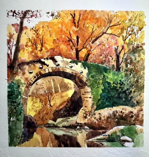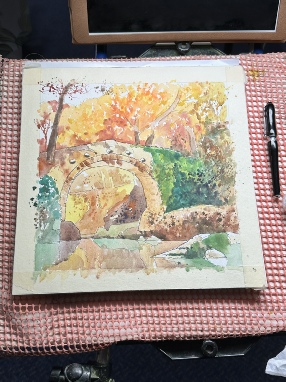A big ‘thank you’ to Barry Herniman (Herr Flik) for Tuesdays demonstration in gouache, of a bridge in an autumn landscape.