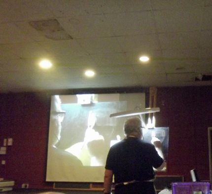 He said of 'Still Life' painting, "You don't have to be a slave to your subject" and demonstrated this by adjusting tones and colours as the painting developed..... he said it was making it up as he went along ...... no, it was a masterly display of making the subject his own!