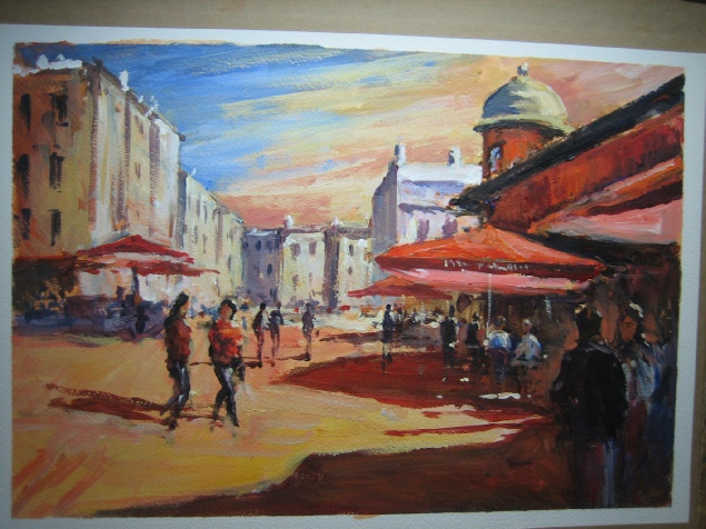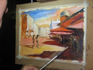 Well, we certainly started our Autumn Programme with a vengeance… the members were given a most entertaining and instructive demonstration of a Portuguese street scene in acrylics.. we were shown Paul’s process, from the initial tonal sketch through to the finished painting.