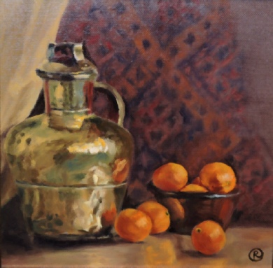(below) ‘Still Life With Oranges’ by Rebecca O’Dwyer, oil, £150