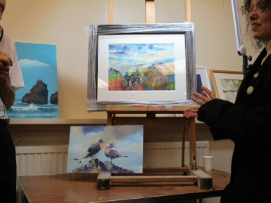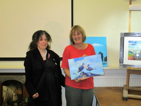 A good number of members submitted their artwork for the critique, ably conducted by Marged Williams. Each painting was viewed and reviewed, with good, constructive advice given. Every member always gains knowledge from the critiques, for their own and others work, and we thank Marged for imparting her knowledge and kind and constructive critiques. It was a difficult choice, she said, but chose her top 2! Claire's Sadlier's 'glowing' seagulls and Eli Absi's evocative valley's colliers. Well deserved both!!