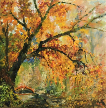 (Left below) ‘Japanese Red’, oil by Claire Sadlier, runner-up overall and winner of ‘City Garden’ section.